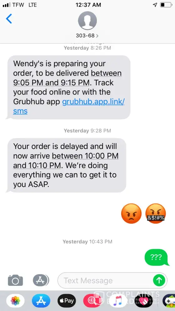 So im done with gh. I have a car so really i was paying for the convenience, but its in no way worth it unless the resteraunt has its own dedicated delivery system. And in those cases i just call the restaurant direct anyway. Even crappy McDonald's food has the expectation to be hot, and the driver should follow the quickest rout to the drop point. Thers always a variance in their rout. Im a construction worker so i use google maps a lot, these drivers are screwing around with peoples food in their car. This could have been great for my field- i order and the food shows up as im going on break, and its hot with a cold drink, awsome right? But its always late and the food sucks. I should be able to alter the tip if for bad service, i bet that would make them care about their job. Or what, should i go to the bank to carry cash to tip? If i have to go out then i can just go pick up my food, so that wont work me. And honestly im feeling spiteful now, because is this even gh? Are they going to appologize? Are they going to monitor their "employees"?So i think i will contact the restaurants ive used gh on, and tell them because of gh i order from their places less often, and that includes the chain stores corporate and franchise owners. I was a chef before an electrician so i know a little something about the culinary field. Im done being frustrated, if someone has a bad experience they will likely tell 7 people, i work with a prime demographic for this type of service. So im likley to tell crews of workers monday- friday- that if they want lunched ruined order from gh. And that goes for whoever absorbs gh as well, your not gonna slap on a paint job and call it a new car. You need to regulate and monitor your drivers. My food was already late and then it switched drivers, and now my kid wouldnt eat the food i bought, its misrepresentation of the products ordered and you misrepresent the service you offer. If you tell the customer your food will be cold and late up front, you know less people will use it. So you lie to people on purpose, and the way to make complaints to the company are hidden, you want us to just sell out the driver. Its gh policies that are the issue, your charging companies for your "service" and screwing them over. Talk about biting the hand that feeds you! People are catching on to your practices and we are not going to take it, so sure ill complain here and where else i can. But, i know how meaningless a format like this is, so thses are just words, i do my real talking with my wallet. I don't spend money through gh, i dont have that problem any more, ill take that trade off. And like i said, construction worker IBEW local 103, you pooched it. Good luck evem though i hope you fail.