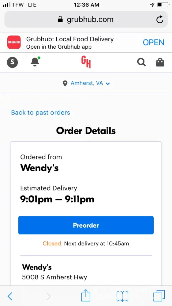 This is now 3 times I have tried to use their service and have not been able to get my orders. GrubHub's website and notification to customers and businesses are lacking serious. AND there is no way to get in touch with anyone that actually is able to care enough except to refund your money after having to tell them multiple times I did not get my order.