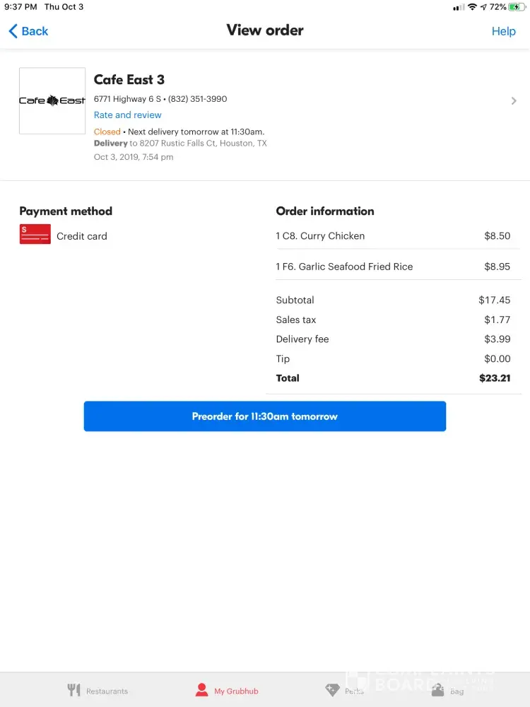 For 3 of the past 4 nights, my wife's cell phone has rung because of grubhub drivers calling to say that the order has been delivered... At 1:00 or 2:00 am... They have woken us from a deep sleep and it takes hours to get back there.