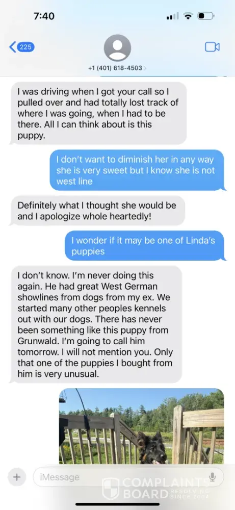 I purchased a puppy from this breeder for $2500. At 6 months old the dog starting limping. I contacted the breeder & he said it was Pano & not to worry. I took him to the vet. After x-rays, and a CT scan that cost $2500 he was diagnosed with Elbow Dysplasia. He had surgery that cost another $2500. I contacted the breeder to discuss the health warranty since the this condition was called out specifically in the contract. He refused to honor the contract. I was offered nothing. No refund or replacement puppy. I would discourage anyone from purchasing a puppy from this breeder.