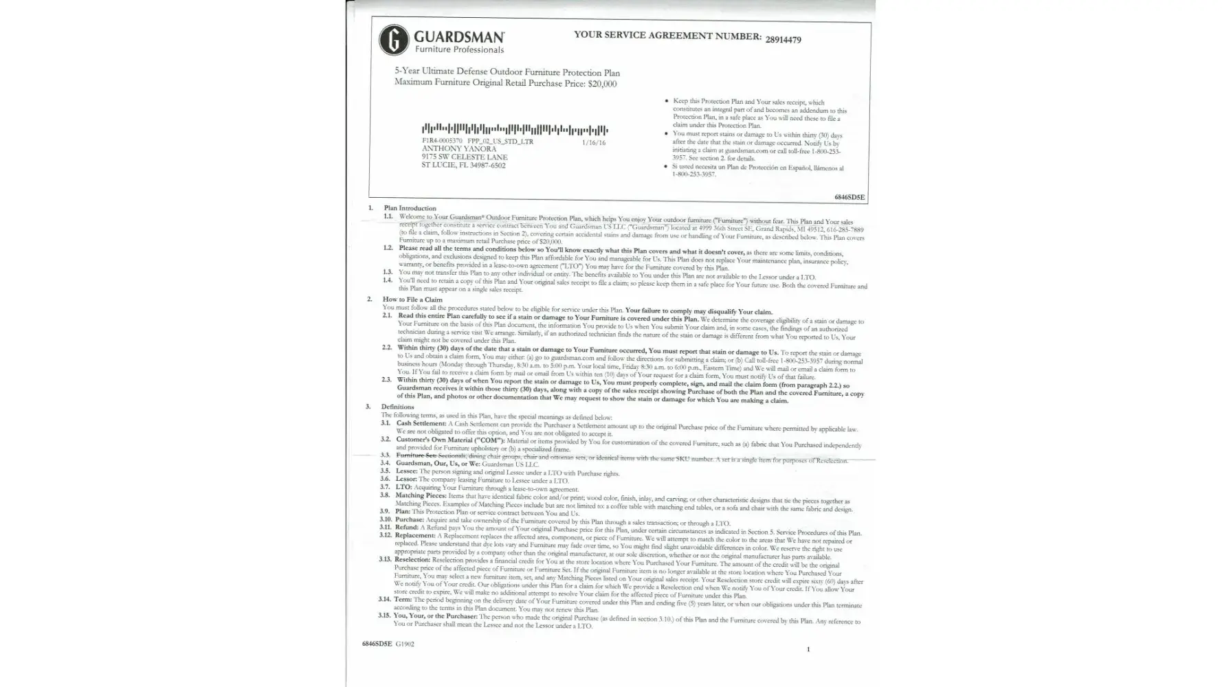 I filed a claim they actually put words in my mouth and saying that normal wear and tear are not covered but I never said it was normal they did now they don’t want to replace the furniture. I really believe that their getting over on people and I wouldn’t recommend these mfks period