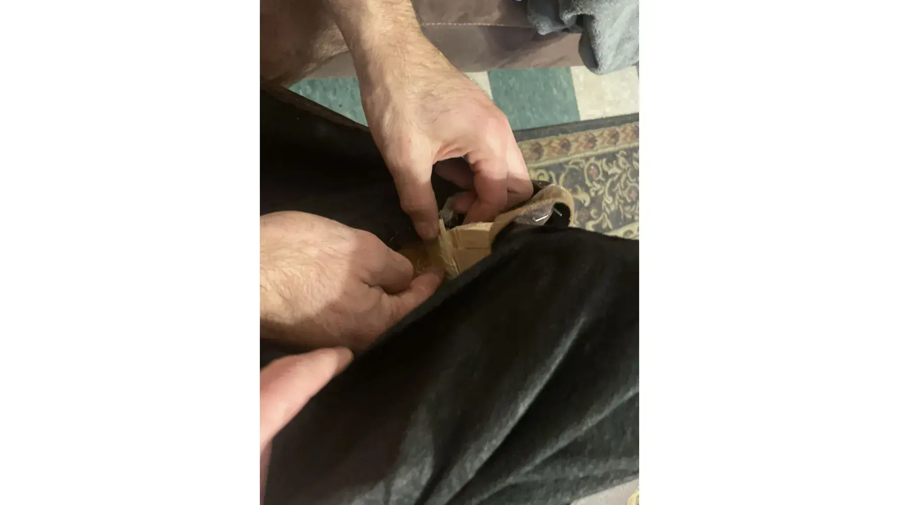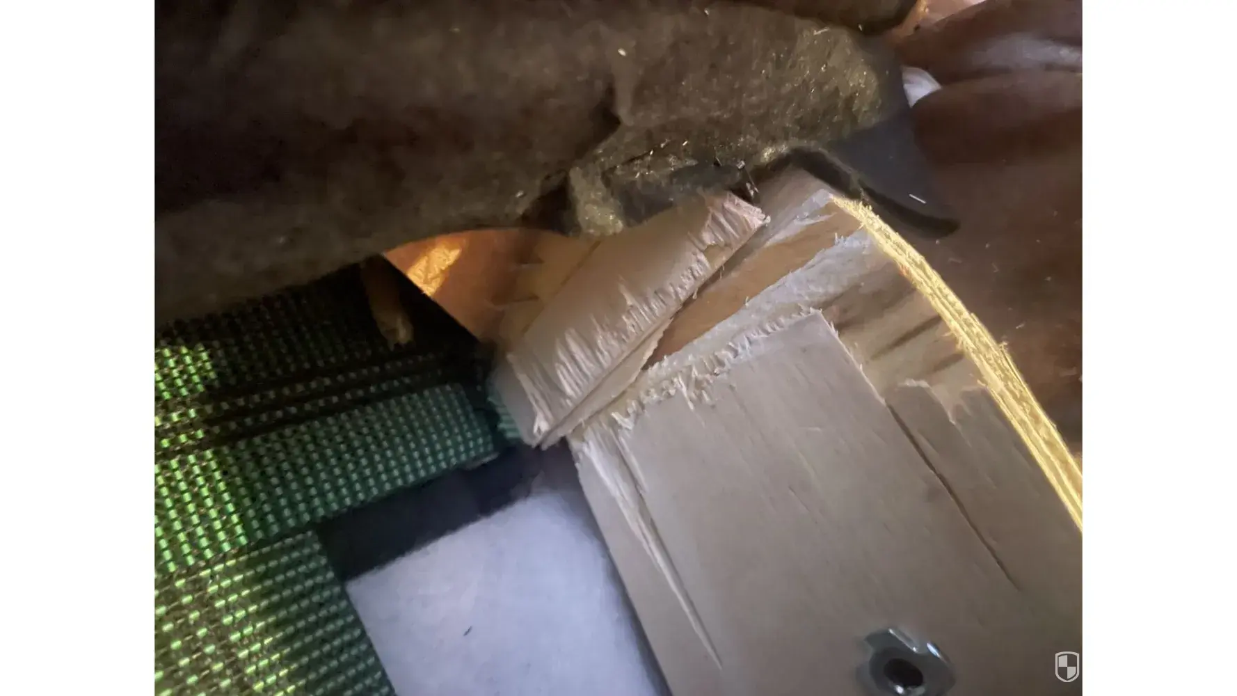 The sofa was moved away from the wall on 2/5/22. A 3" cut in the fabric was observed near the wood base A claim was filed with Guardian with copies of the receipt and pictures of the cut.