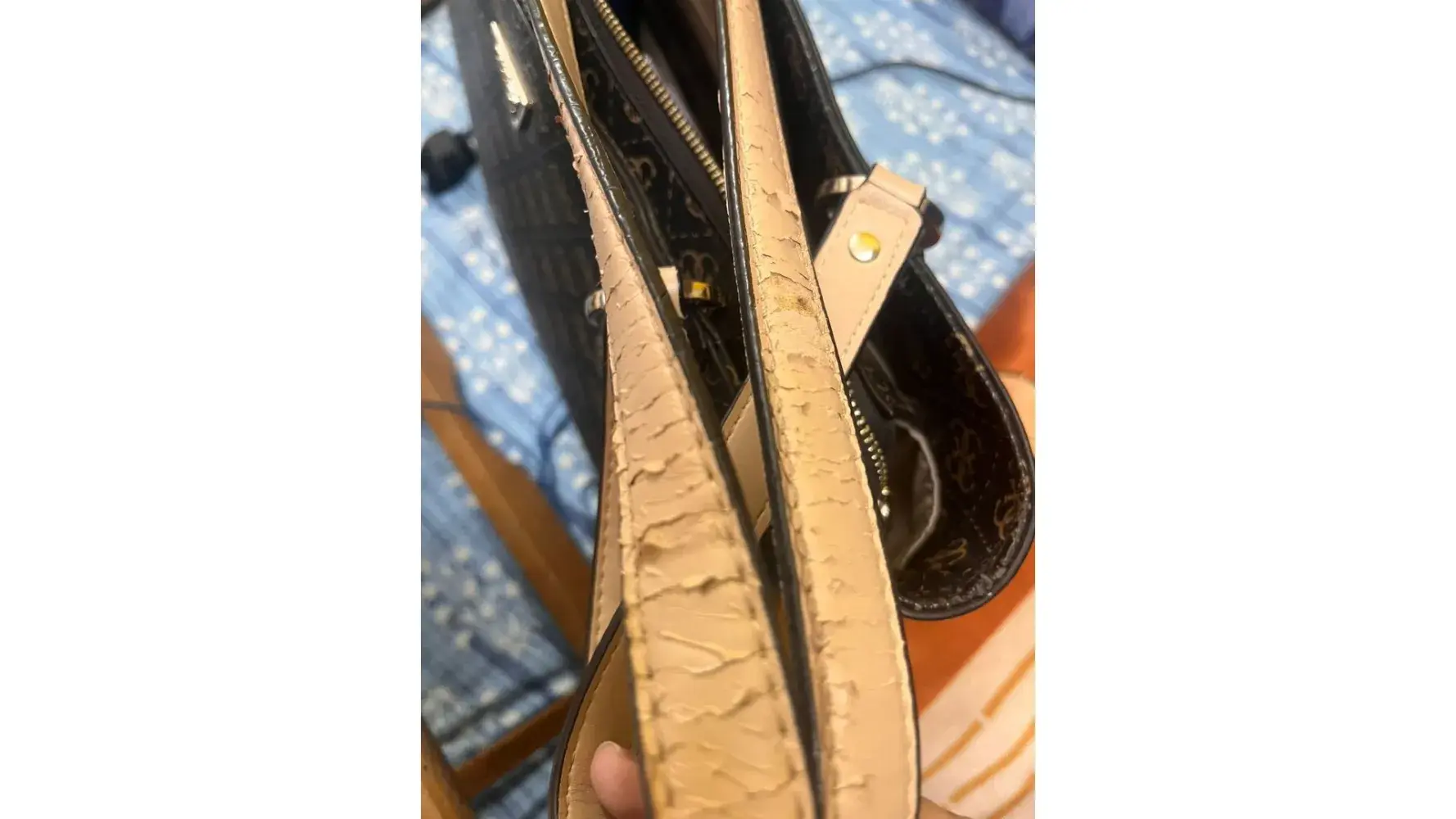 VERY DISAPPOINTED. I took this bag to the store only to be told that it's normal wear and tear.Surely a bag should not be peeling after 7 months.Guess is a prominent brand and surely this is not acceptable.