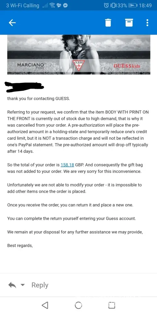 Is this an expected Guess product attitude, knowing that I kept it exactly in the conditions received from the Guess Shop?