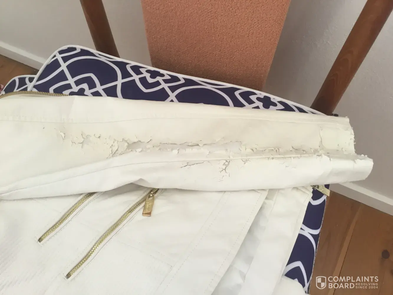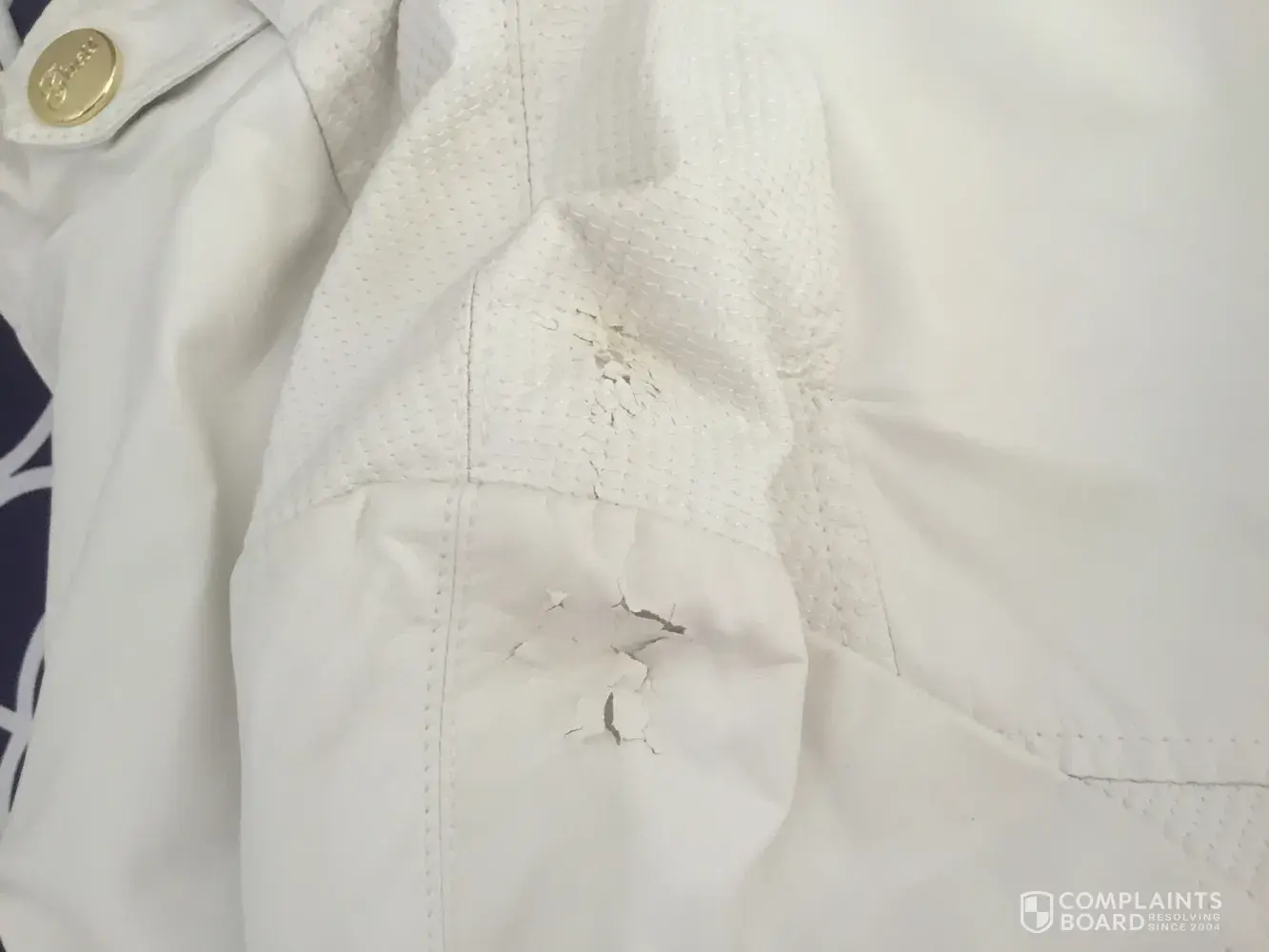 last night we went out for dinner my wife decided to wear this item MUCH TO HER SURPRISE this is what she found one off her jackets in terrible condition she spends good money on clothing would not expect this to happening to a guess item