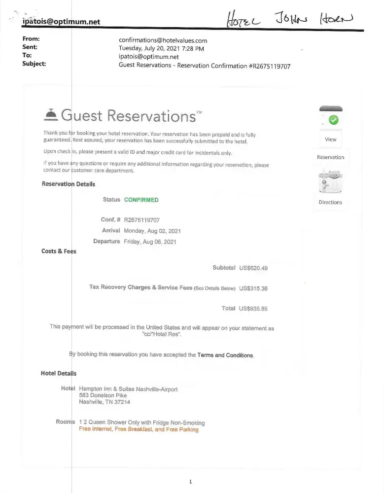 Our niece is getting married 9/19/21. The hotel venue, Madison Beach, they chose is totally booked that weekend. The front desk redirected us to Comfort Inn nearby. I used my Chase credit card to book the reservation. R [protected]. They added $130 to the rack rate for things like housekeeping, taxes, and fees. Traditionally, that's part of the hotel's rack rate. You cannot reach a person with this company. There seems to be a little recourse. Let's hope the room is decent.
