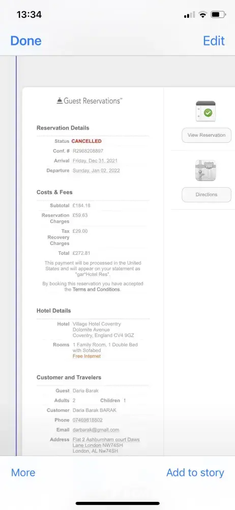 At 3:31 on March 1st, I believed that I had made a three-night reservation with the Hilton Garden Inn at Saratoga Springs (Aug 30th – Sep 2nd) for $1,368.69 on the Inn's website. Reservation # R3186739567. I did a search for Hilton Garden Inn Saratoga and clicked on the first URL which was hiltoninnsaratoga.guestreservations.com. The website opened with the Inn’s actual web page which was partially covered by a box for reservation searches. Across the top of the screen, there was also a half-inch banner in light grey which included, “Guest Reservations An independent travel networkâ€. For reference, my computer screen is 9†x 13†or 117 square inches. The entire banner was 6.5 square inches and the identifying language took up 1.25 square inches, slightly more than 1% of the entire screen space. Everything about this page would lead one to believe that this was the Inn’s website except for this very small patch in the upper right hand corner. I would not have entered into this transaction with Guest Services if their business practices has been straight-forward.