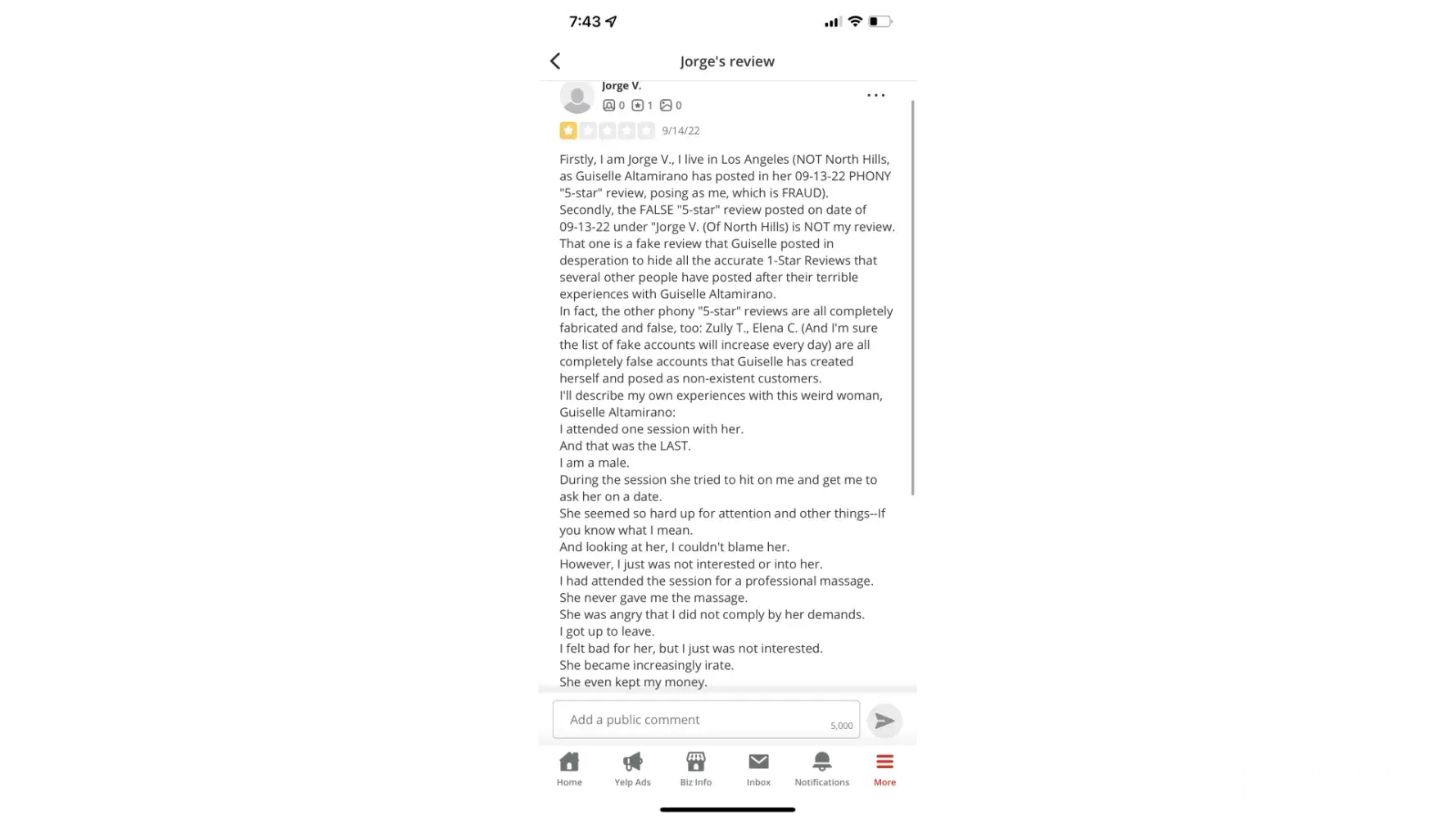 And when you look at her Yelp page, you'll see several PHONY "5-star" reviews. These are FAKE reviews that Guisselle posted herself, under PHONY accounts, in order to mislead potential customers and lure them to come spend their hard-earned money with her, under false circumstances.