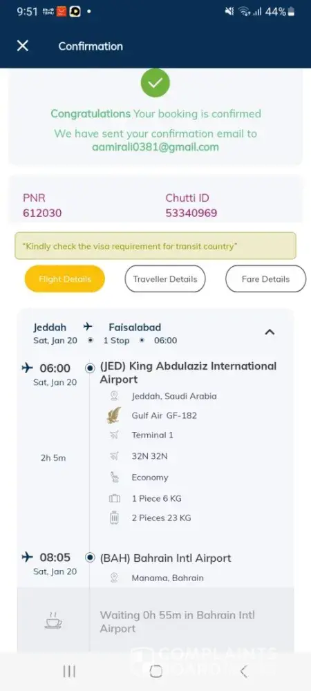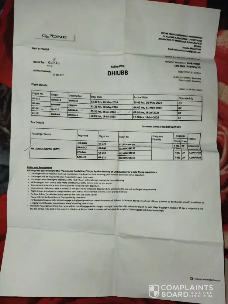 Already raised the online ticket (SR240019872) to Gulf air but haven't received any revert yet.