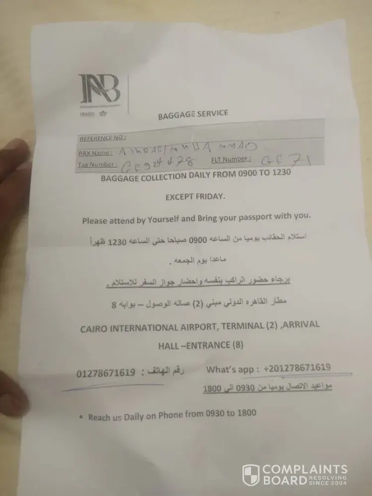 I travelled on 29th July from Islamabad to Cairo via Bahrain. Unfortunately, I didn't receive my baggage at Cairo International Airport. It was a 23 kg bag ISB-CAI, it has a passport number and all my details are mentioned on it. On that day, I reported a complaint at Cairo airport, but they didn't get any response from Gulf airways. I tried to reach them...