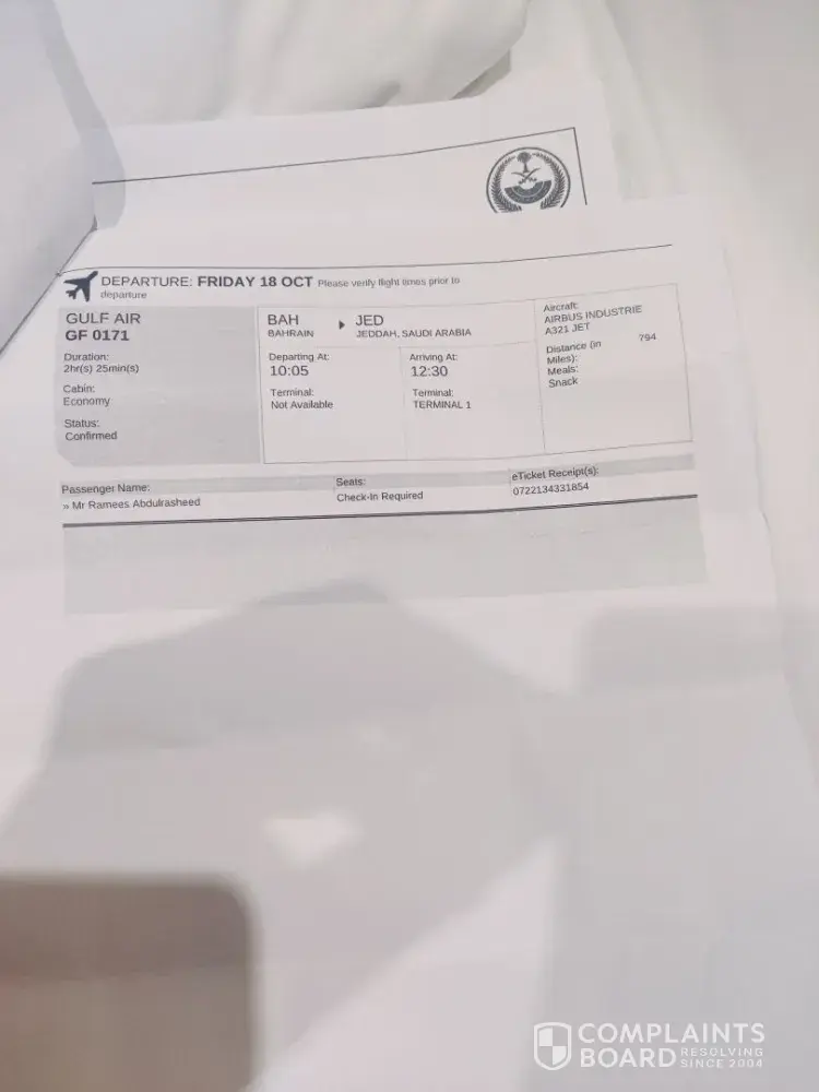 FLIGHT NUMBER GF171 BAHRAIN TO JEDDAH