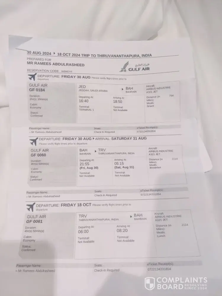 My name Abdul Bari Kaleel Ahmed, my falconflyer # 17460910, I mostly choose Gulf Air for travel, also I recommended my relatives, friends and co-workers to book their tickets in Gulf Air. However, before few days the behavior of the staffs in Kuwait and Jeddah was extremely uncomfortable. 1. On 03.09.2025 around 4:45 am, I boarded at the Gulf Air (GF212...