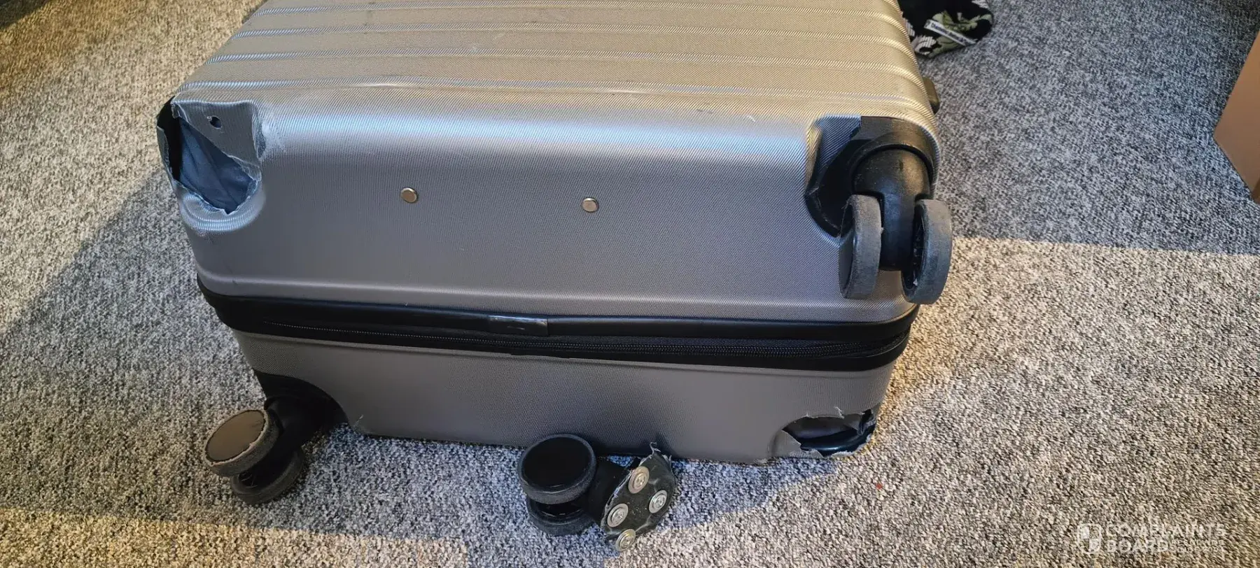 Upon arrival at Munich Airport, I discovered that my suitcase was damaged. Specifically, one of the wheels was broken, and the zipper was torn. I have attached photographs of the damage to this email for your reference.