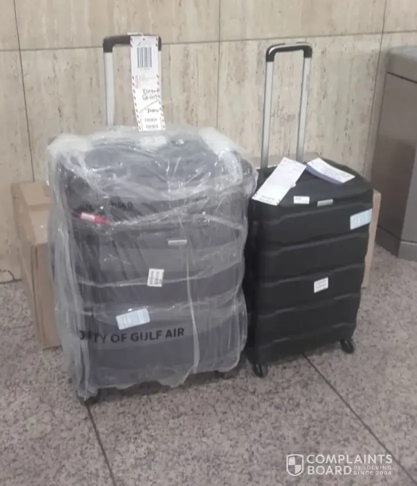 I want to raised a complain in the Airlines. We arrived last Sunday Nov. 3 at 6:30pm from Moscow - Bahrain - Dammam without our two check in baggages. We immediately made a report in Swissport Lost & Found in King Fahad International Airport and had their contact number. We supposed to book another flight this week for our vacation but we came home without our bags. I keep on calling the Swissport but still theres no update from Gulf Air and they cannot even hardly track our luggages. After 3 days of waiting we went to Gulf Air Khobar branch to make another report and they just advised us to send emails. I got a response and they said it was in Bahrain on the 4th day with a different bag tags. They asked to describe whats inside of those 2 black and purple luggages and even asked the brands, I enumerately told them (coats, jackets, boots, shoes, perfume, supplements, hair Iron toiletries, etc.) After 5 days we finally received our two luggages and it was opened in Moscow with the sticker Domodedovo on it. the lock and zipper and the two bags itself was totally broken, my things in the puple bag were about to come out and they just put a scatch tape around it. Who is responsible for this damage, delays and for compensation we supposed to have?