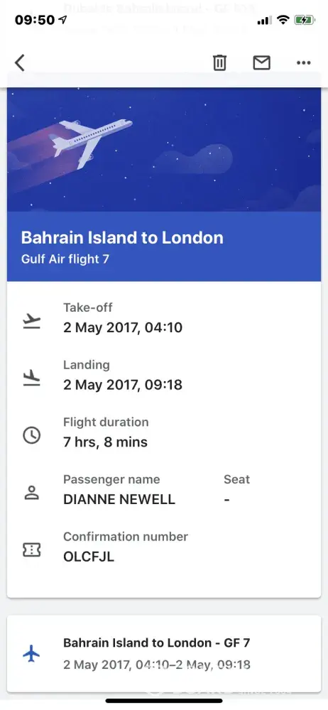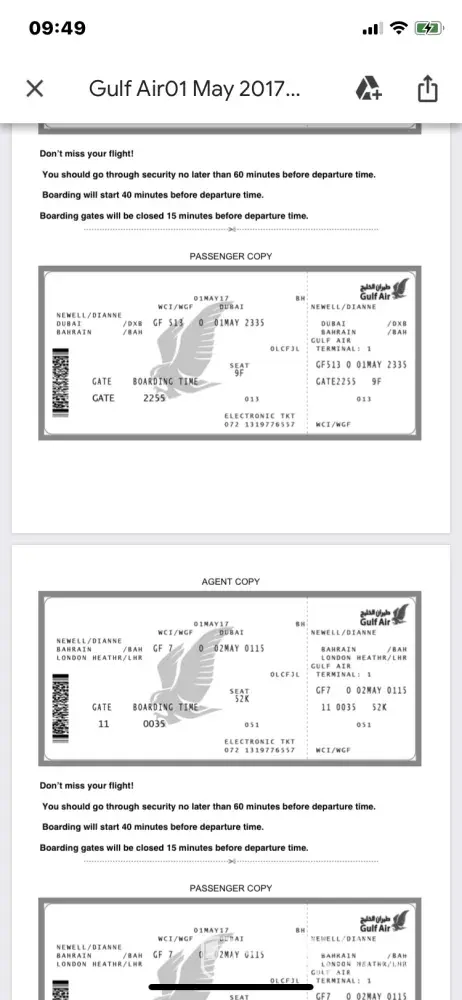 I have recently flown with Gulf air on Sunday 09 Jan from Karachi to London via Bahrain GF03