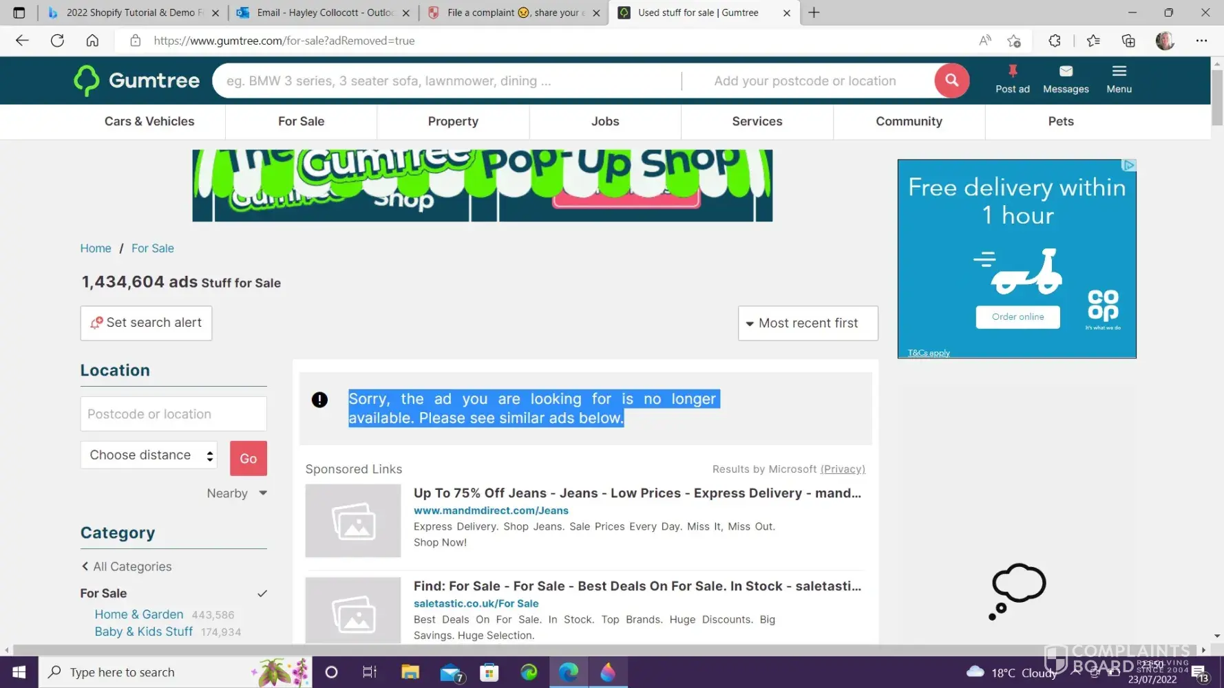 Desired outcome: I would like to be able to view the advert I posted and not be given a message saying "Sorry, the ad you are looking for is no longer available. Please see similar ads below."