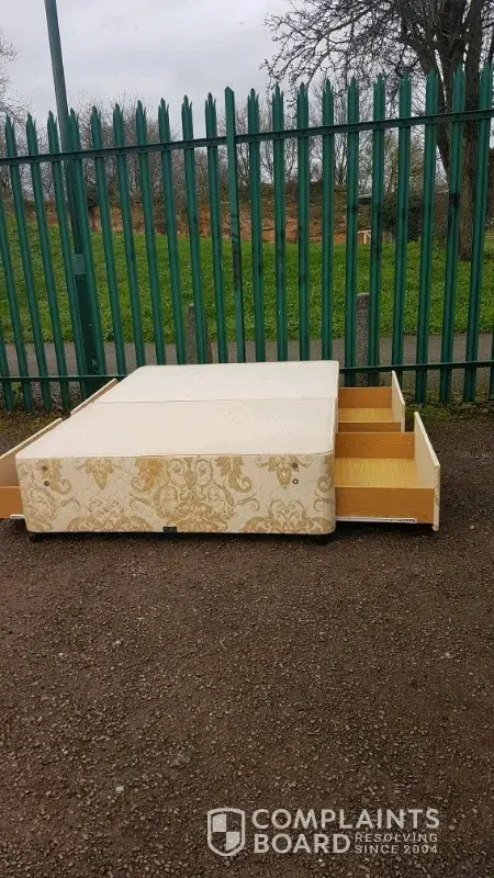 I bought a double bed base for £35 +20 for delivery. Bert came when very dark outside. We helped him in with it into a narrow hall. Light was poor. I did notice a rip onside & corner, not seen on photo. Not till he'd beed paid and put in b/room did we notice it was not the bed I'd seen in photo. It was a different bed with lots of rips. Looking like it had come out of a skip. I texted and asked for money back and I would report him. Not heard back Vanessa