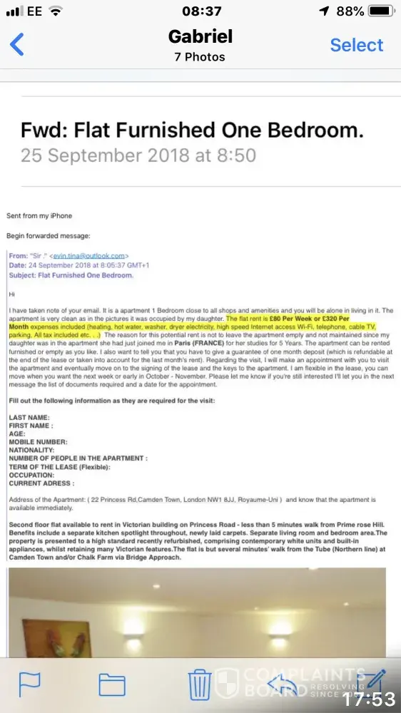 I posted an ad on Gumtree looking for a house to rent and someone called Kelly Baghurst got in touch. After emailing back and forth about 'her' property, she had sent me a tenancy agreement which had a nonexistent address, couldn't call her because she made up a health problem and after looking into her on social media and other sources, found out the property is not owned by her and she is taking exsisting pictures from other properties advertised on estate agents' websites, which is also data theft. DO NOT TRUST OR PAY TO KELLY BAGHURST - [protected]@gmail.com / +[protected]