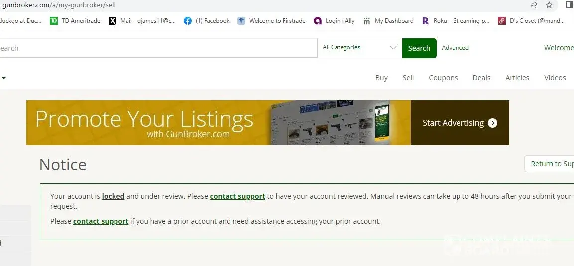gunbroker are a bunch of criminals, they ripped me off for $635.00 with ZERO support, i have proved my claim three times and gunbroker ignores me after being a member for 14 years. If you don't want to give your money away don't buy or sell on gunbroker