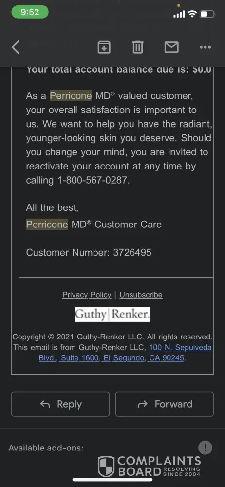 I did make one purchase from this company, last year. As requested, I provided my email address for confirmation of the order. But since then, I have received email, after email advertising their products. These are unsolicited emails given that I have never authorized receipt of advertisement and promotional emails from Guthy-Renker. I have followed the instructions at least thirteen different times, to unsubscribe from these emails. And each time, have received the message from them that I am unsubscribed. Yet the emails continue! It is a nuisance. It is over kill. At this point I consider it a violation of privacy. Thanks you.