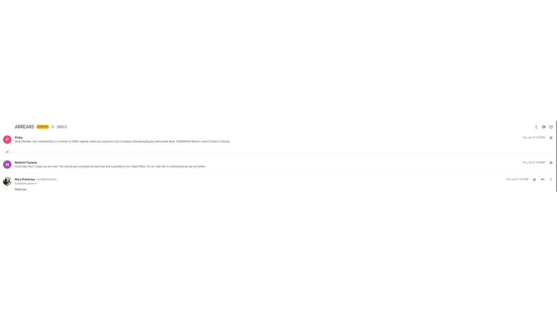 Desired outcome: Cancellation of the gym membership so that I start afresh. I also want my R100 back. Please let me know once all this is fixed on [protected] or [protected]@gmail.com