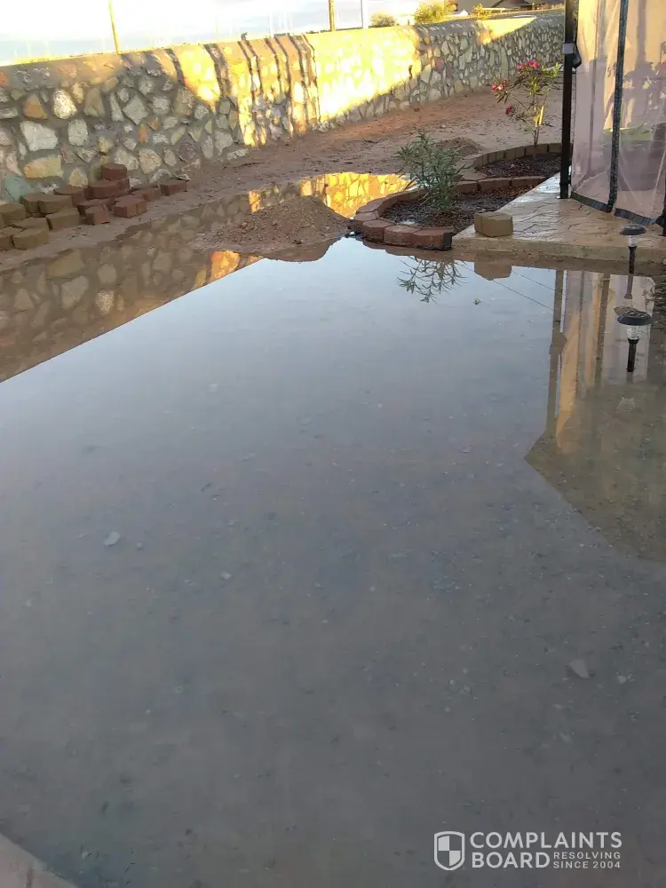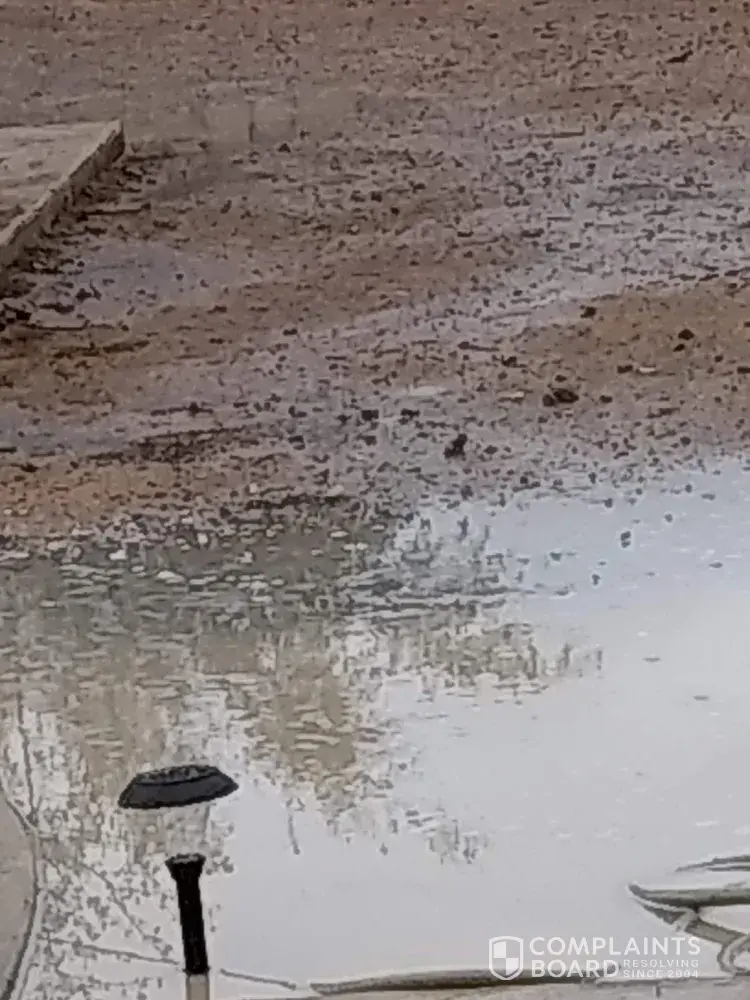 this is how they left my sons home who is a disable Veteran this isn't right he has spend over 8, 000 (he took out a loan) to try to fix his front yard because trash pick up won't come into our property...he couldn't even walk out his back door..& when it rain well let the pic tell the rest of the story