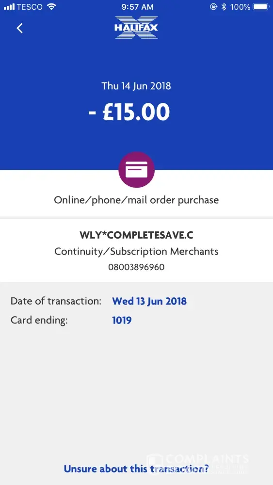 5/01/2016. Complatesave.co.uk they take money from my account without my confirmation. I want my money back. Thanks