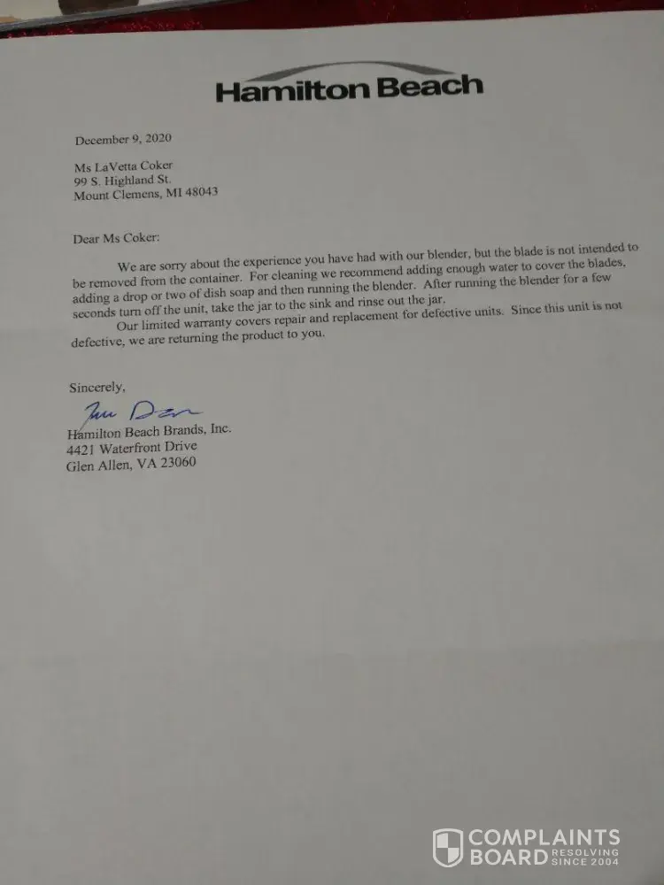 Hamilton Beach Brands complaints: history and resolution overview