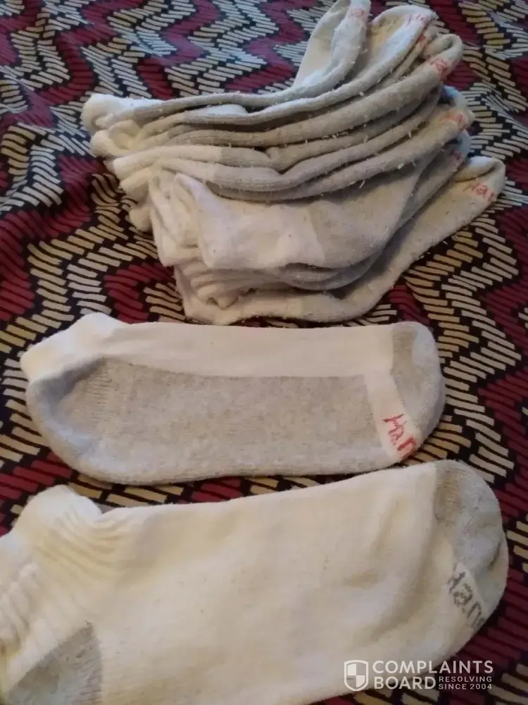 I have been buying Hanes socks for years, up until my last purchase I've had nothing but good service, I purchased I believe a 12-pack something it like it was oversized pack each and every one of the socks has frayed to have like little balls all over 100% of the socks I've had the same washer same detergent same person doing my laundry for the last 10 years something in the socks is defective. I do believe compensation is in order and if I can I will send pictures along with the statement thank you