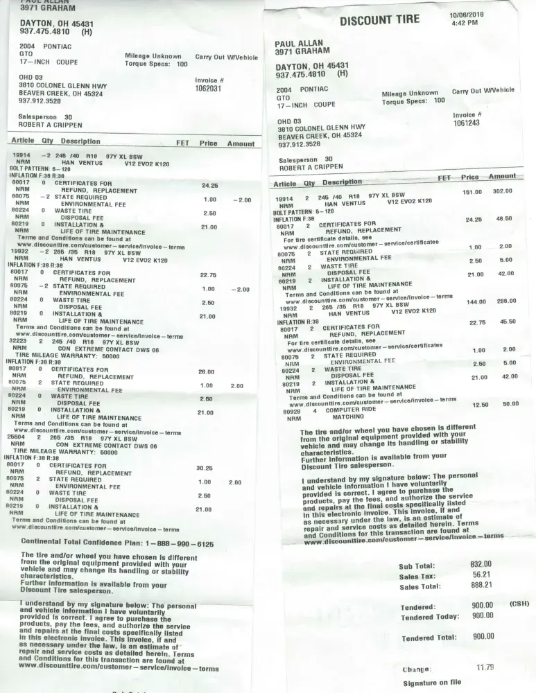I recently ordered a set of your tires (invoices attached) from my local Discount Tire. I originally ordered them in the store on a Friday and was told they will be in the following Monday . When I went in to check they said your distributor lost the order and had to redo the order and they would be expedited to be there on Wednesday. Went in on Wednesday and was told they had never been shipped. Now they are to be expedited for Friday by 3pm with tracking number. Friday, sorry there not coming and we don't have the cash to refund your original payment. Sat there 2 hours trying to resolve this. Finally they offered another set that are supposed to be comparable. To be honest I saved all summer to buy my first set af hankooks for my 2004 gto and am truly just very disappointed about the whole situation. Most likely will never know how they would perform on my car because of this experience and will never go back to my local discount tire that I have done business with for several years.