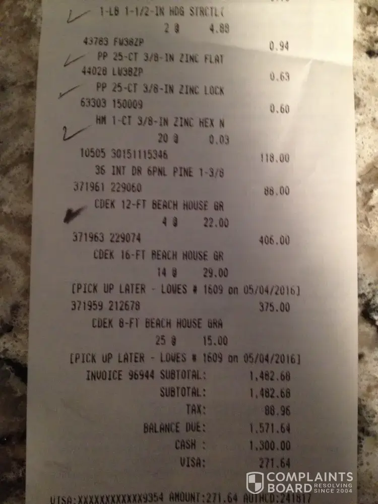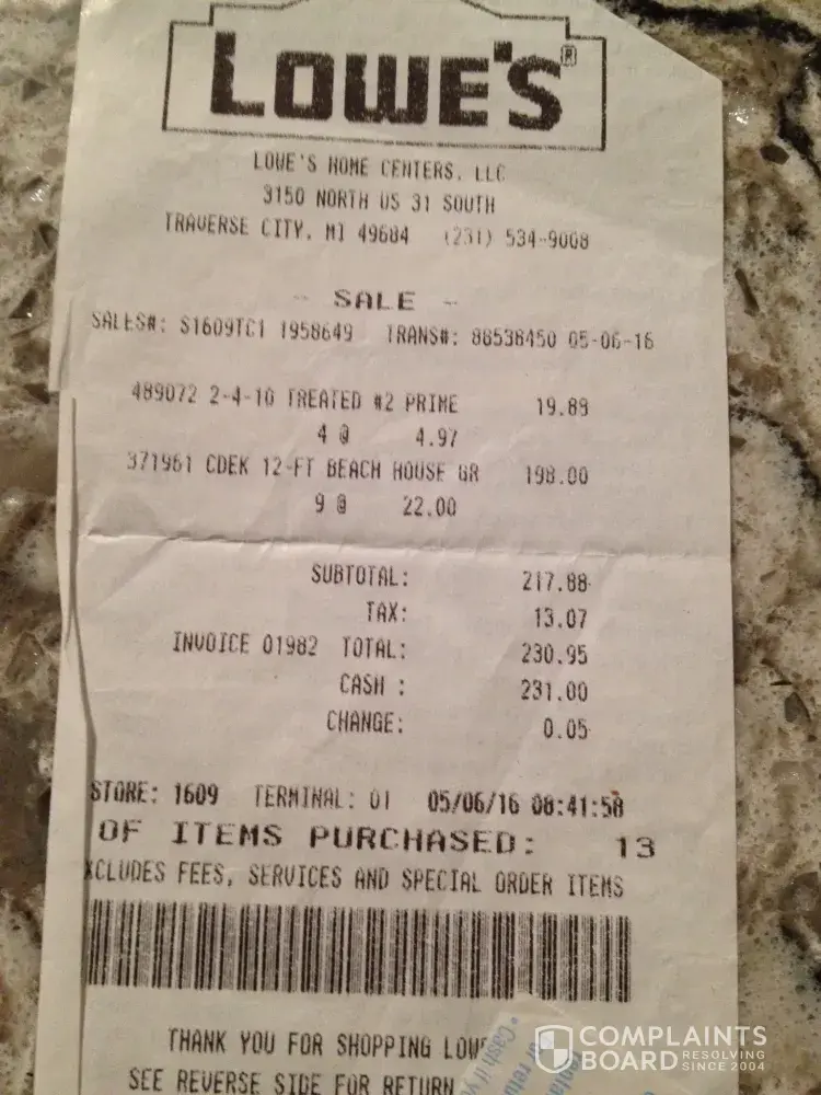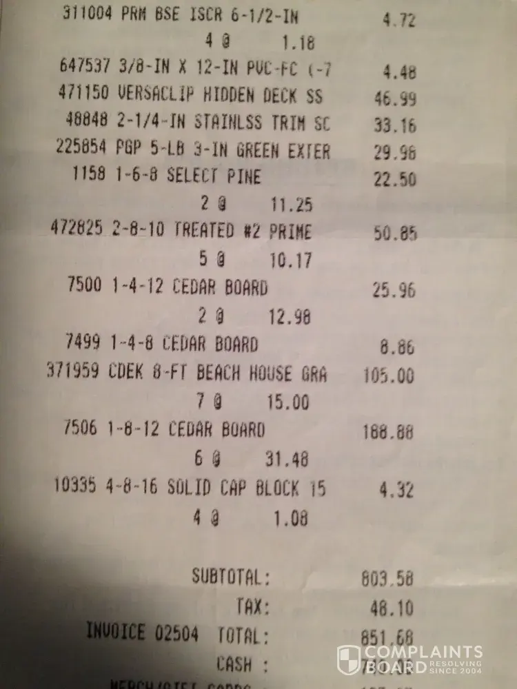 I am requesting a full refund for this deck material. I am submitting receipts.