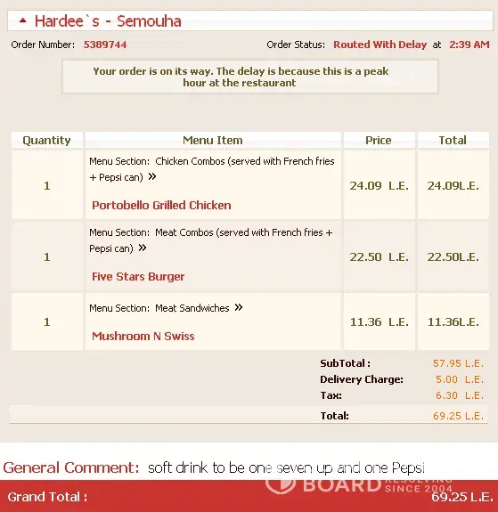 I ordered a delivery from hardees egypt alexandria somuha branch from this web site http://msn. Otlob. com