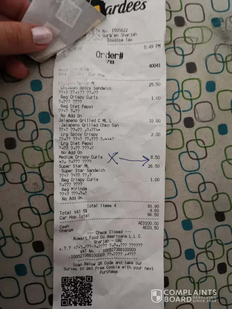 On May 24th, 2020 we ordered several items from a Hardees branch in Qara'en, Sharjah, UAE. One of the items we ordered (Medium Crispy Curls) was missing although we paid in full! we discovered this when we reached home (we live about 5 miles from the branch)! we called their 600 number ([protected]) I think more than 3 times and every time they send us around to different numbers! finally a person from complaints answered the call and told him what was going on in boring details... he kept putting me on hold and allegedly talking to the branch every time... the call took 15 minute and all he took from me was the order number (#78) and the branch name! does it take 15 min to do that? at the end of this totally useless call, the guy PROMISED me that someone from the branch will call me back within a min after I hang up! I am writing this complaint two hours after the complaint and still waiting for branch expert to call me back! This is not the first time we order something and we get either a different thing or there a missing item... it happened before in the same branch but we either got fed up running around in circles with unprofessional inefficient customer service calls or we decide that it was not worth it, but this time I decided to write this complaint hoping that it reaches a listening ear!