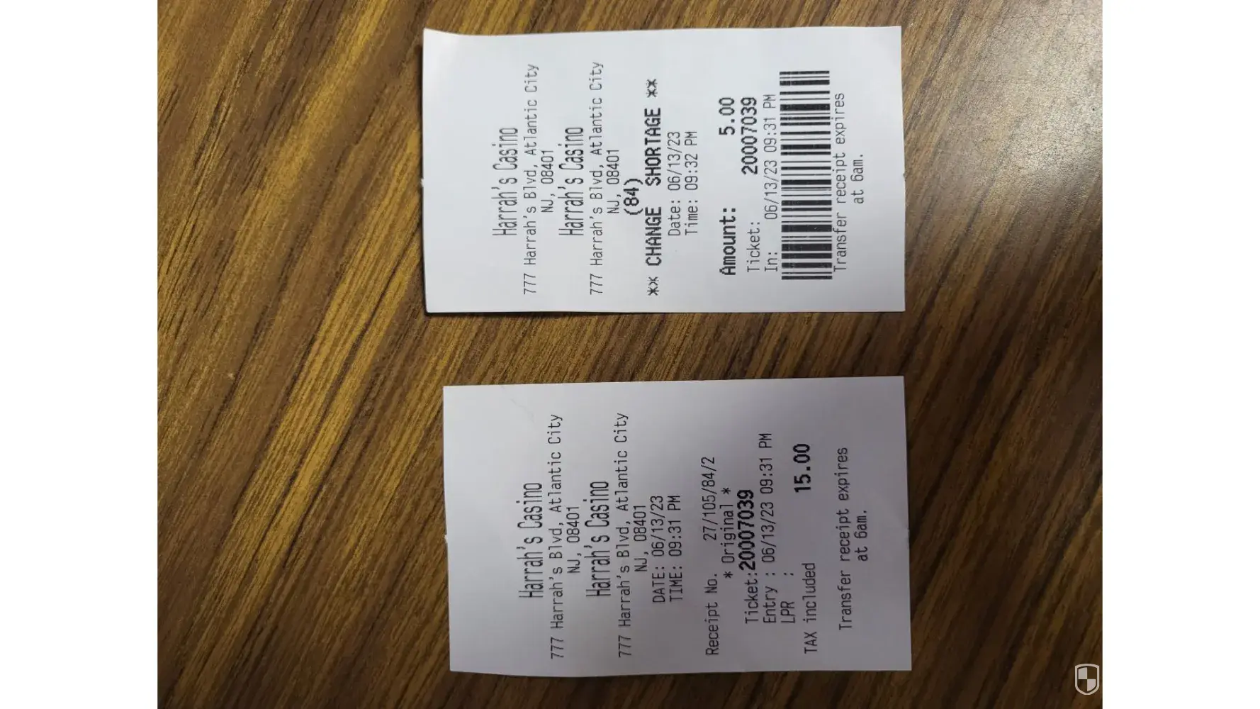 My wife and I went to McCormick & Schmick's for dinner on June 13, 2023 and had parked in the self-park lot. After dinner when we left the casino parking lot, I had gone in the cash lane to pay for parking. I inserted a $20 bill into the machine and the gate went up and I was waiting for my $5 change to be dispensed out of the slot that says change. No change was being dispensed as it stated it would be. I had other cars behind me waiting to leave also so I pulled out to let the other cars leave and I looked at my receipts that came out of the machine and the one receipt showed $15 paid and the other receipt said ** CHANGE SHORTAGE ** $5. I was not going to park again and have top pay another $15 to go back into the casino to get my $5. I was only visiting AC that evening because I live in Pennsylvania and was not going back to AC anytime soon. The following day I sent a message to a message board for Harrah's and asking them how they would send me my refund of $5 owed to me. After I ended the form, I received a message saying that they received my request and would have a response shortly. It is now June 30 and no response yet. I just can't believe that a casino has a change shortage. I even submitted photos of my receipts.