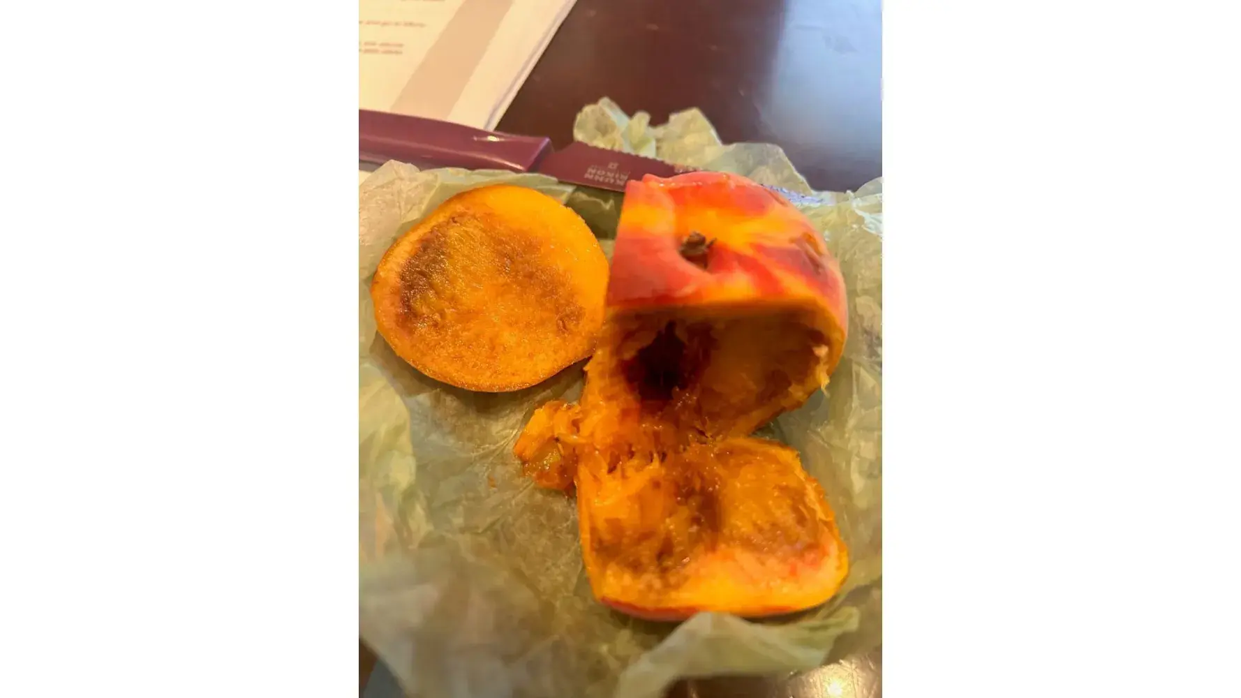 I have purchased the wonderful peaches for the past 5 and have always raved about them. I ordered a bit later than usual but was still able to receive them which made me happy. However, out of 9 peaches, 5 of them were mealy, brown inside and inedible. I have never had an issue with one peach before. If they were over-ripe when I ordered them, they should have told me it was too late in the season to order them. These are not cheap and I was very disappointed.