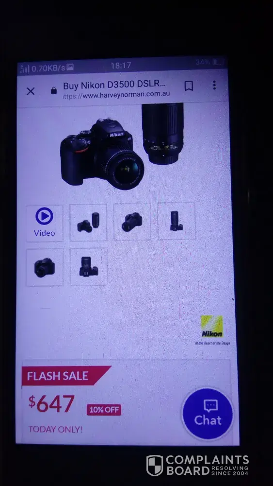 On 13/12/2018 we went to harvey norman store in garbutt townsville to puchase a nikon d3500 dslr advertised online for that day only $647 10% off.