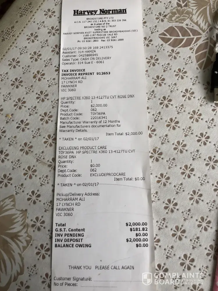 I am aware a brand like Harvey Norman would not be affected by losing my business but I sincerely hope customer service standards are pulled up to avoid similar situations in future with other customers.