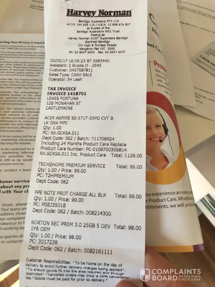 12 march 3pm brought a brand new Laptop September 2016 from Harvey Norman Cannondale Qld