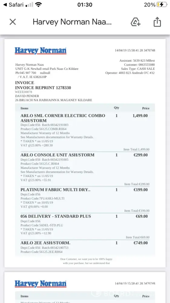 We are so upset by the product, the service and the lack of customer service from Harvey Norman. This has upset us SO much that we do not want to ever deal with them again. Our friends and family are also shocked at the inferior product and said they won't be buying furniture either.