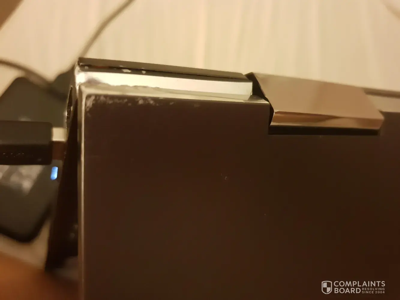 Three days ago I collected my laptop from your Harvey Norman after it being away for repairs through product care for five weeks. I didn't use the device until the following day, and when I did look it over I a noticed significant recent marks and scratches that were not there previous to being sent for repairs. The laptop looks as though it has been dropped onto the charger connection, which is now also bent. There is also a dent at the front of the unit. A peice of the mental casing which I had previously bent has been "fixed", now its rough and sharp, and very unacceptably repaired.