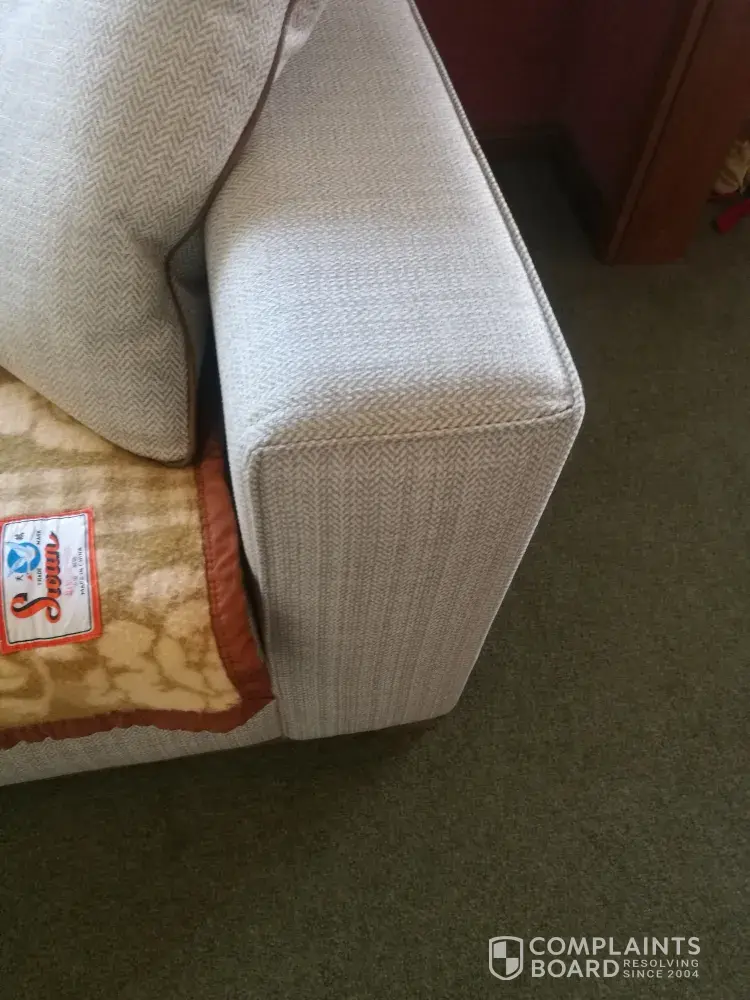 So it now has dirty cusions, and strap marks as well as the arms not matching... Also we noticed that the lounge was wabbley ...