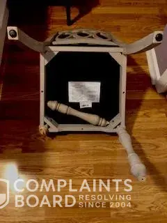In December (28th or 29th), 2019, I purchased a silver deluxe dinette set consisting of a table and six chairs. On July 18, 2020, my grandson (weighs 50 lbs) was sitting on the chair and it collapsed as the leg broke. On July 20, 2020, I went to Haynes and the representative, named Shy took pictures and informed me that if I don't hear anything in three...