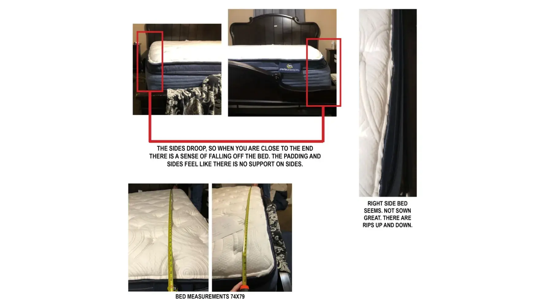 The mattress we ordered isn't the same one in store. There looks like an obvious defect on the right side of bed, which feels like you are going to fall off bed. The seems on left and right are also coming apart. We have only had this mattress for like 3 weeks and spent the last week trying to file a claim. They basically said nothing they can do. Haynes and the warranty company.
