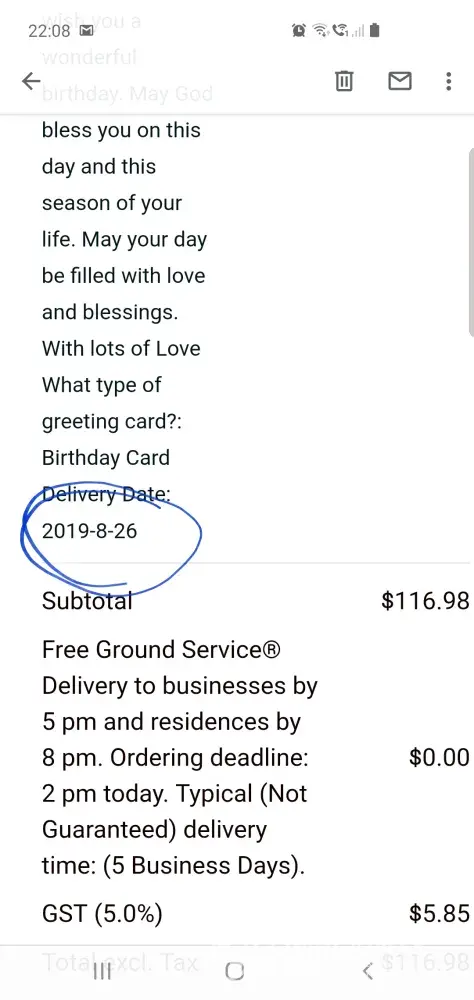 Please see the attached photos. My order was specifically arranged to be delivered on 26-08 but so received an email saying it is out for delivery. Why then ask for a delivery date? Plus now my recipient will get a gift on the day that's not their birthday. Making me look horrible like I don't know when it is!