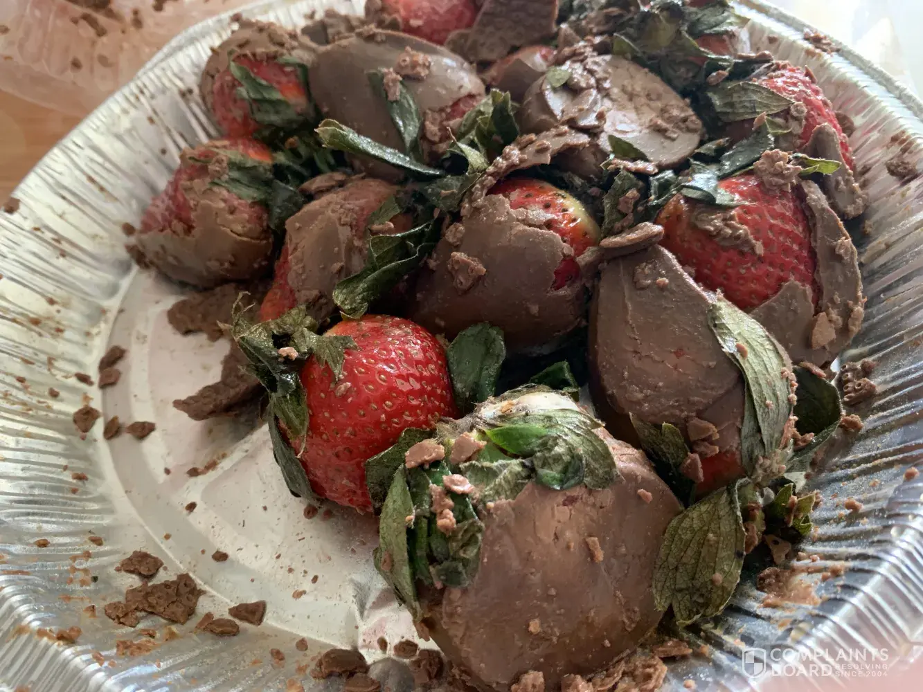 Our son who lives in Langley, British Columbia ordered a gift box from Hazelton's of Scarborough, Ontario, to be delivered to Destin USA. He sent the order on Monday December 9th, USA on December 13th 2019, for my husband birthday. The package was delivered on Monday 16th December so three days late, it was in a huge box with no indication of the up or down side, so when the parcel arrived the bottle had mashed the chocolate covered strawberries, and it was full of strawberry juice in the box. I sent an email to complaint but they say that there is nothing they can do because it was perishable item, sorry but if it was delivered on time in a proper box it would not happened!