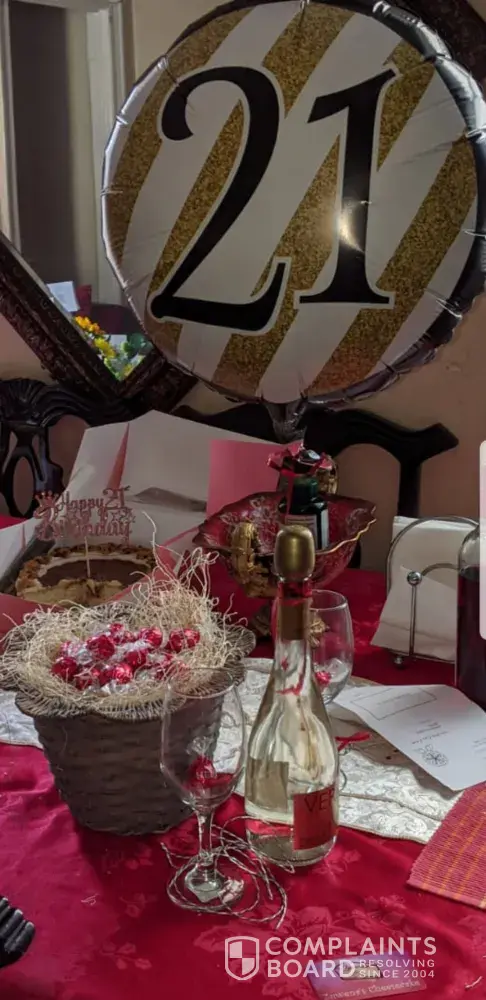 This was a 21st Birthday present for my daughter who is living in New York. As you can imagine during these difficult times I wanted something special to be sent to her and got nothing of what I ordered. Not only was the delivery a day late (I understand) but the cheap sparkling wine and chocolates that were thrown into a basket was not what I paid for or...