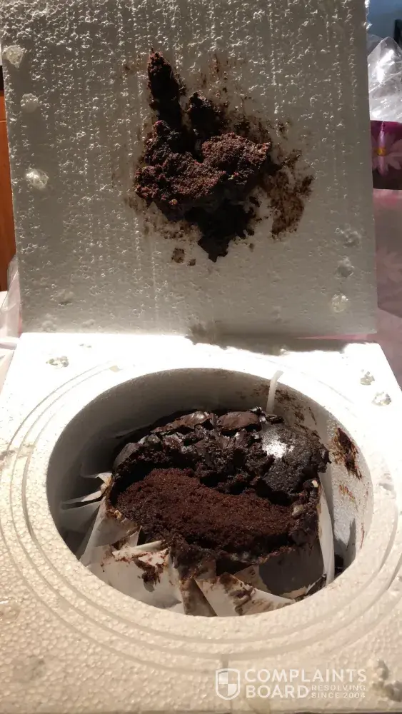 I made an order for a Hazelton’s Vegan Chocolate cake on 11/10/2023. I got to select the delivery date, I selected 11/22/23 the Wed. Just prior to Thanksgiving. My cake arrived the day AFTER Thanksgiving on Fri.11/24/23. It was a damaged WHITE layer cake covered in pastel sprinkles? So very disappointed!