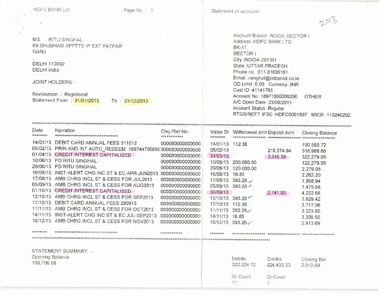We have taken up the matter with concerned branch and will respond to you on your registered email id in 5 working days. The reference number for your query is [protected].