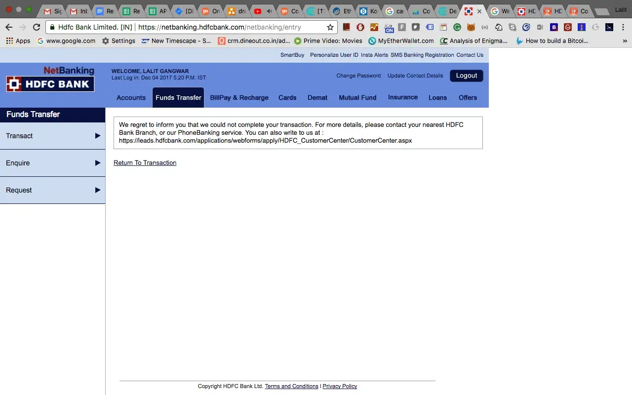 *** We regret to inform you that we could not complete your transaction. For more details, please contact your nearest HDFC Bank Branch, or our PhoneBanking service. You can also write to us at : https://leads.hdfcbank.com/applications/webforms/apply/HDFC_CustomerCenter/CustomerCenter.aspx ***