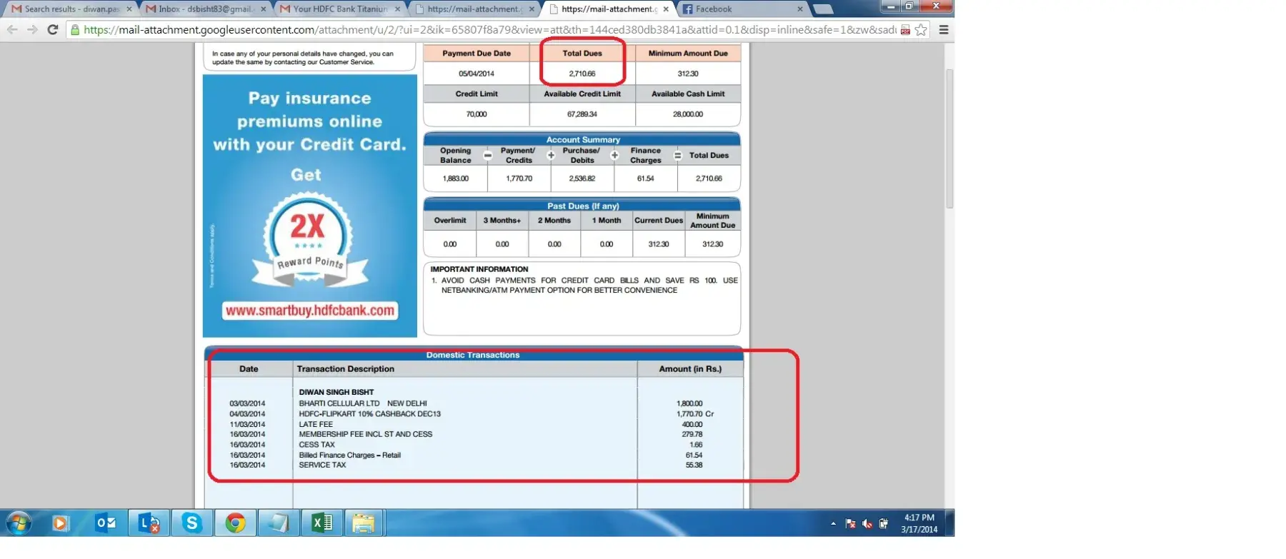 I have HDFC CREDIT CARD - I received my current month statement from HDFC BANK.